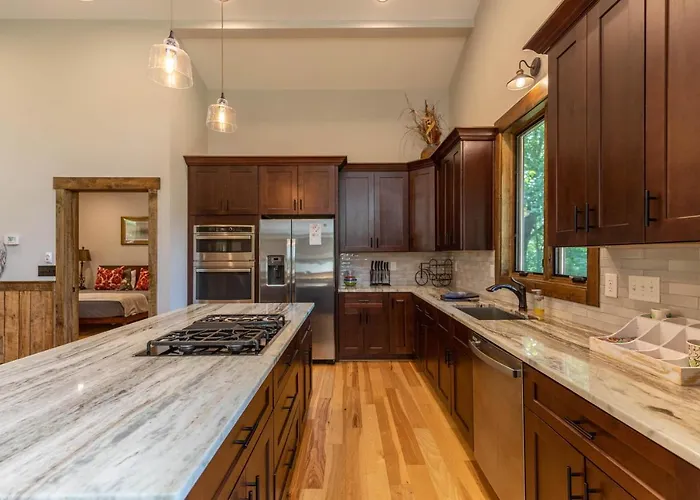 The venue is 10 minutes' drive from Grandfather Mountain State Park. Ski slopes are near the villa. You can get to Rough Ridge Lookout in a few minutes by car. The nearest airport is Tri-Cities Regional airport, 100 km from the accommodation.